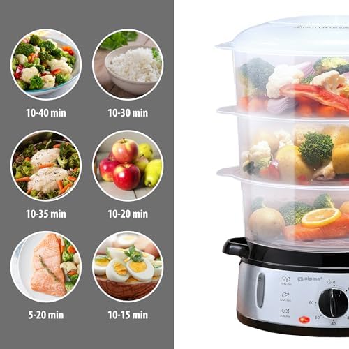 alpina Cuiseur Vapeur 3 Couches, 9L, Sans BPA, Gris, 230V/800W