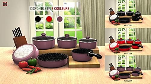 En tant que cuisinière passionnée, j'ai adoré utiliser cette batterie sur ma plaque à induction. Le revêtement en pierre assure une cuisson homogène et les casseroles se nettoient facilement. La couleur bordeaux ajoute une touche chic à ma cuisine.