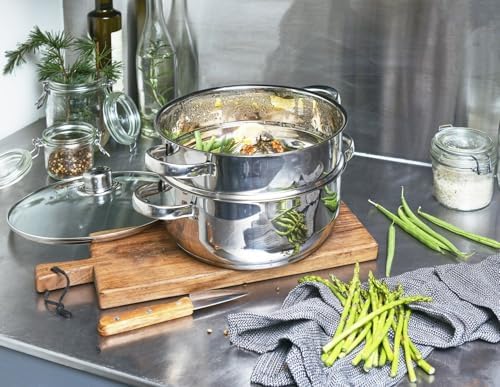 Ce combiné vapeur est idéal pour préparer des repas sains pour toute la famille. La taille de 24 cm est parfaite pour cuire des légumes à la vapeur lors d'un dîner. Les poignées fixes et l'acier inoxydable assurent une bonne prise en main et une durabilité. Un ajout pratique pour ceux qui aiment cuisiner ensemble.