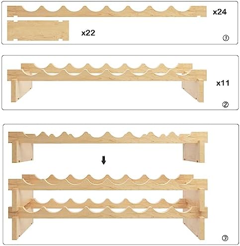 Casier à Vin en Bois Non Traité, Range Bouteille Vin, 12 Étages, Naturel