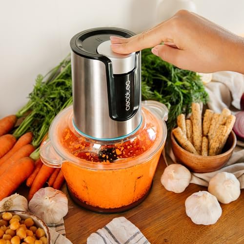 Cecotec Hachoir Électrique ChopBeat 2000 Delhi Glass, 500 W, 4 Lames, Bol 500 g