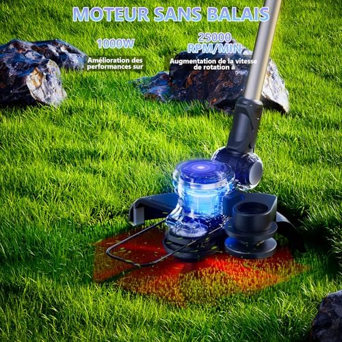 Coupe Bordure sans Fil 21V, Debroussailleuse Electrique 3-en-1 avec Moteur sans Balai