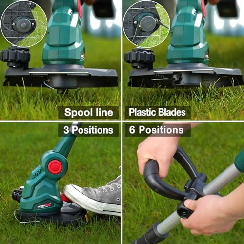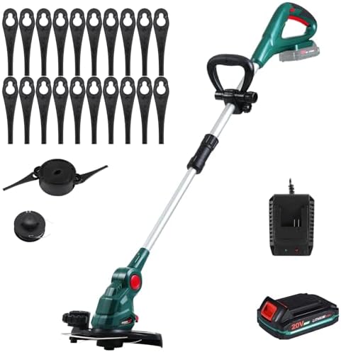 Coupe-Bordures sans Fil 20V, Debroussailleuse Electrique, Poignée Réglable, Lame en Plastique