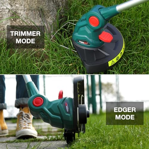 - Polyvalence 2 en 1 : Passez facilement du mode coupe-bordure au mode tondeuse pour une utilisation optimale dans toutes les zones de votre jardin.