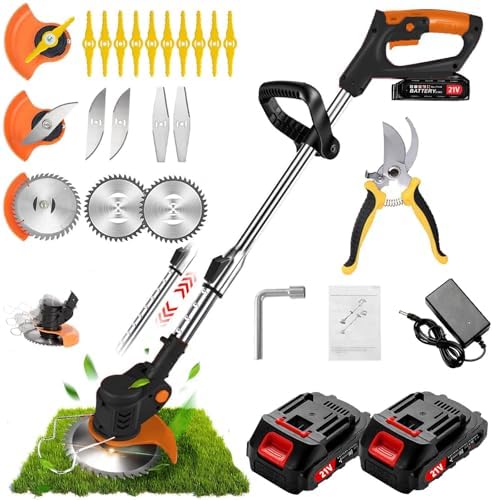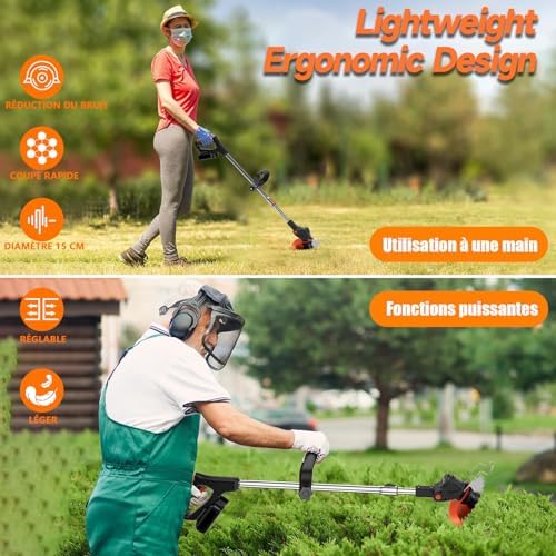 Débroussailleuse Électrique sans Fil 21V, 3 Lames Incluses, Léger et Puissant