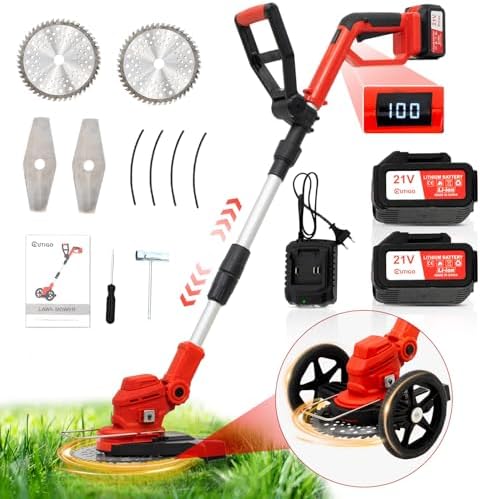 Débroussailleuse Électrique sans Fil Pliable, 3 Lames en 1, 2 Batteries 4000mAh