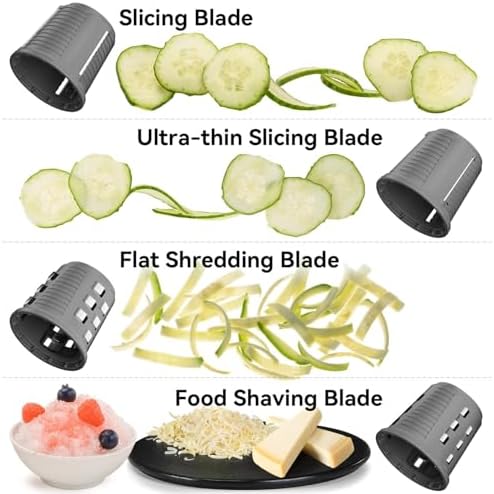 - 4 Lames Interchangeables : Profitez de lames pour trancher, râper et râper ultra-finement, idéales pour une variété de légumes et fromages.