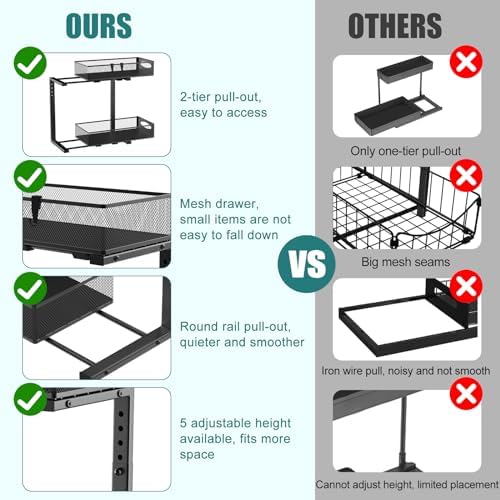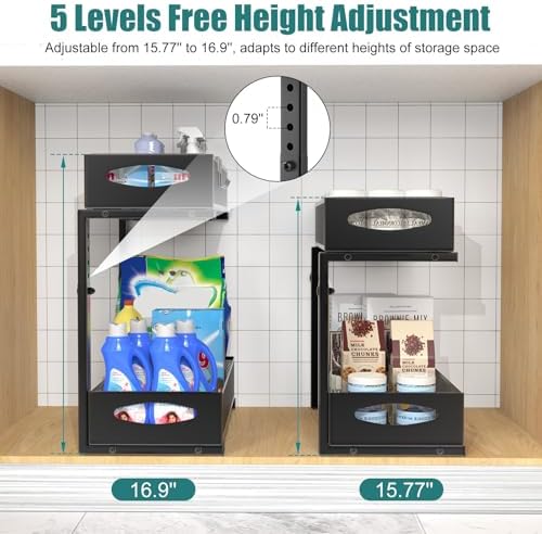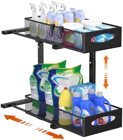 Étagère sous Évier Coulissante à 2 Niveaux, Organisateur sous Évier Noir, Hauteur Réglable