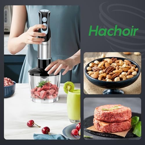 Fresko Mixeur Plongeur 4-en-1 HB3302, 1000W, 12 Vitesses, Acier Inoxydable