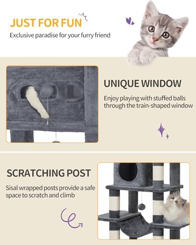 Grand Arbre à Chat 170 cm, Tour à Chat avec Griffoirs et Hamac, Gris Foncé