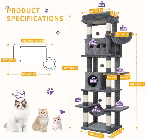 - Dimensions Précises : Avec ses dimensions de 50 x 40 x 170 cm, cet arbre à chat s'intègre facilement dans votre maison tout en offrant un espace généreux pour vos chats.