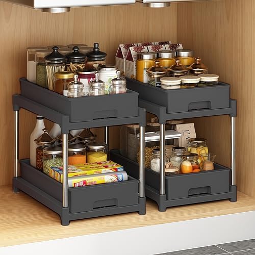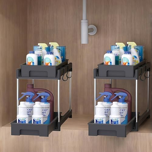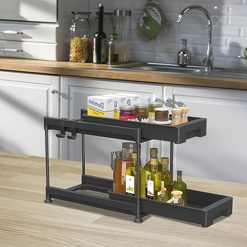 Organisateur sous évier à 2 niveaux avec tiroir coulissant, Noir