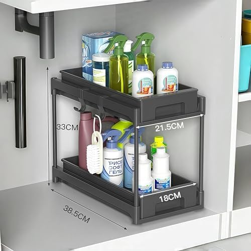 - Dimensions Précises : Avec des dimensions de 38,5 x 33 x 21,5 cm, cet organisateur s'adapte parfaitement sous votre évier.