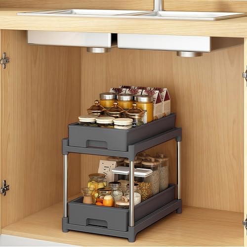 Organisateur sous évier à 2 niveaux avec tiroir coulissant, Noir