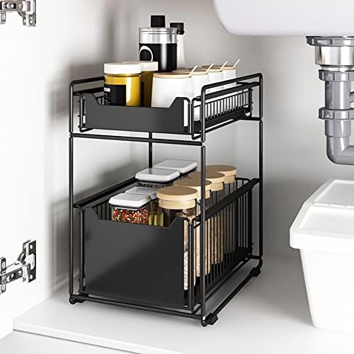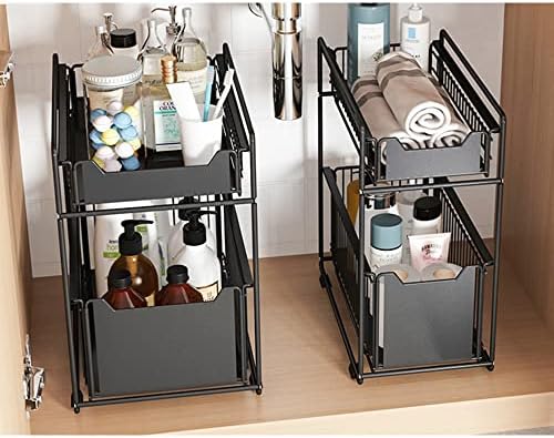 Organisateur sous évier à 2 niveaux avec tiroirs coulissants, Noir