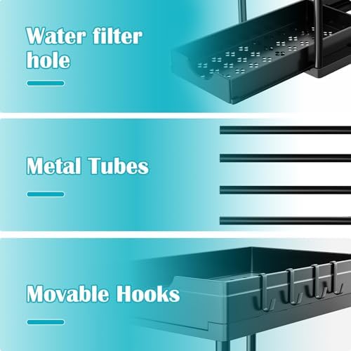 Organisateur sous évier à 2 niveaux, Tiroir Coulissant Cuisine, Noir