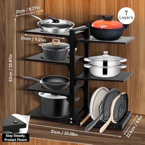 - Conception à Hauteur Réglable : Ajustez librement la hauteur et le nombre de niveaux selon la taille de vos poêles.