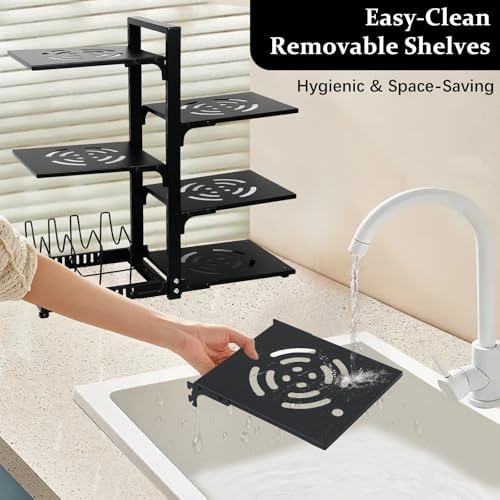 Organisateur Sous Évier Multifonctionnel à 7 Niveaux, Noir, Acier Carbone