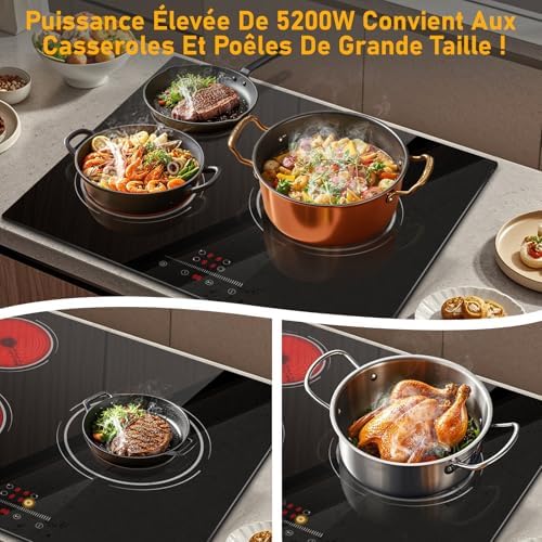 Plaque Induction 3 Feux avec Chauffage Double Anneau et Minuterie Intelligente