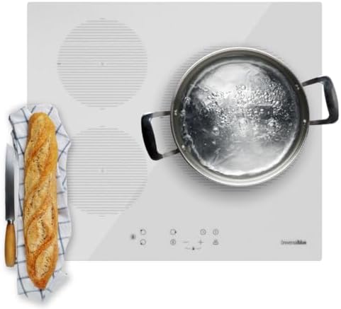 Plaque Induction 3 Feux, Blanc, Contrôle Tactile, 7000W