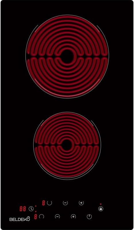 Plaque Vitrocéramique 2 Feux Encastrable, 3000W, Noir, 3,8 cm Épaisseur