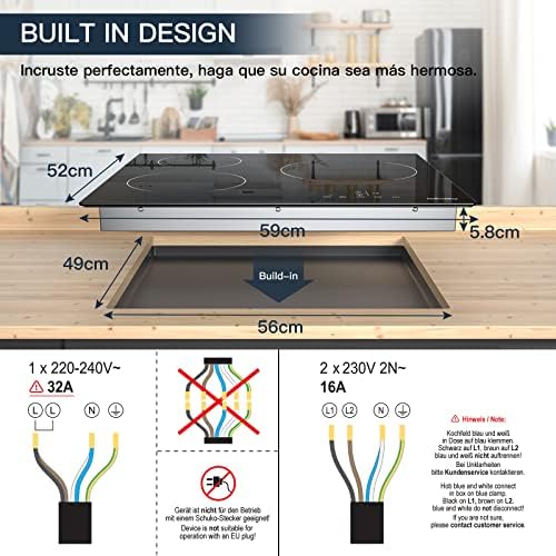 Plaque Vitrocéramique 3 Feux, Plaque Induction 3 Feux, 60cm, Tactile, Minuteur