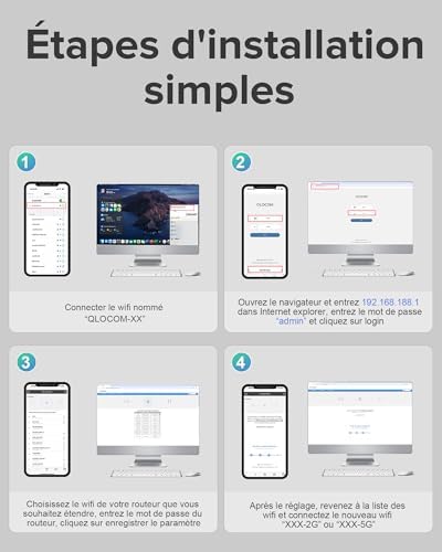 - Installation Facile : Connectez simplement l'amplificateur WiFi à votre routeur via une page web IOS/Android/PC pour une configuration rapide.