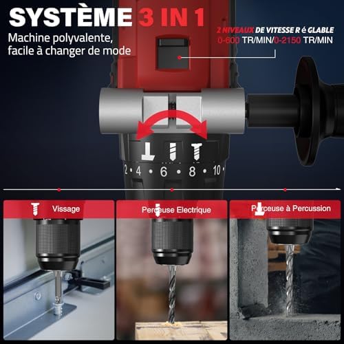 - Réglages de Vitesse : Adaptez la vitesse à vos besoins avec deux vitesses allant jusqu'à 2150U/min.