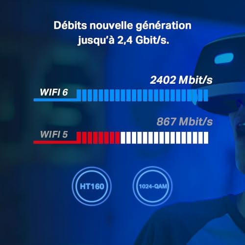 - Vitesse WiFi 6 Incomparable : Atteignez jusqu'à 2402 Mbps sur 5 GHz et 574 Mbps sur 2,4 GHz pour une expérience de navigation fluide.