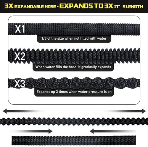 Le tuyau extensible de 30m est pratique pour arroser le jardin. Toutefois, la pression d'eau diminue légèrement à pleine extension et les connecteurs en laiton nécessitent un serrage régulier pour éviter les fuites. Les 8 modes sont fonctionnels mais un peu redondants.