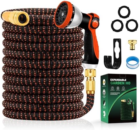 Tuyau Arrosage Extensible 30m/100Ft, 10 Modèles de Pulvérisation, Noir Orange