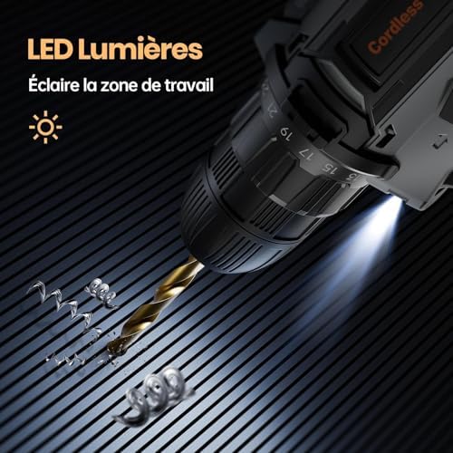 Cette perceuse-visseuse sans fil est un atout pour mes projets de bricolage du week-end. Avec ses deux batteries, je n'ai jamais à m'inquiéter de manquer de puissance. Les 89 accessoires inclus sont très utiles pour divers travaux à la maison, rendant chaque tâche plus facile et rapide.